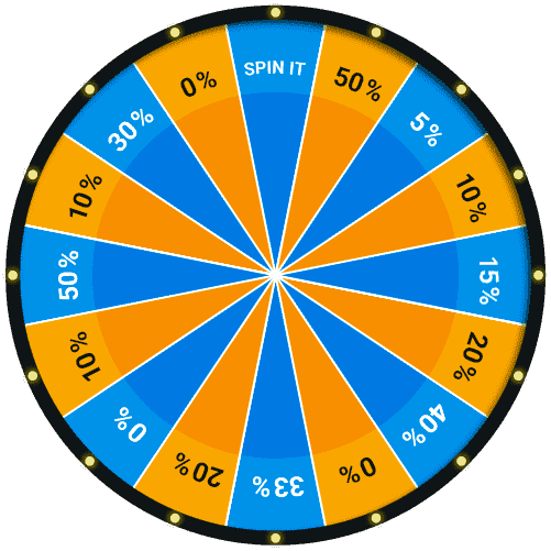 En nuestro sitio ofrecemos descuentos a los lectores en toda la producción. Prueba tu suerte y presiona el botón "SPIN". ¡Si tiene suerte, puede solicitar nuestra producción a un precio inferior al habitual! Buena suerte!